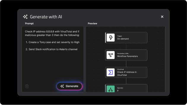 • Generate custom security automation workflows rapidly using large language models (LLMs) to build the initial framework and integrations.