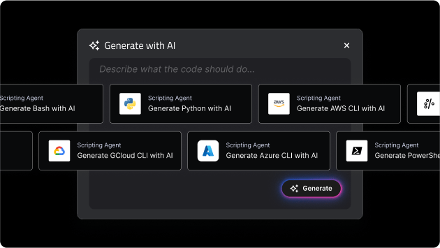 • Leverage AI to automatically populate specific step parameters for script writing, command line interface, and data manipulation.