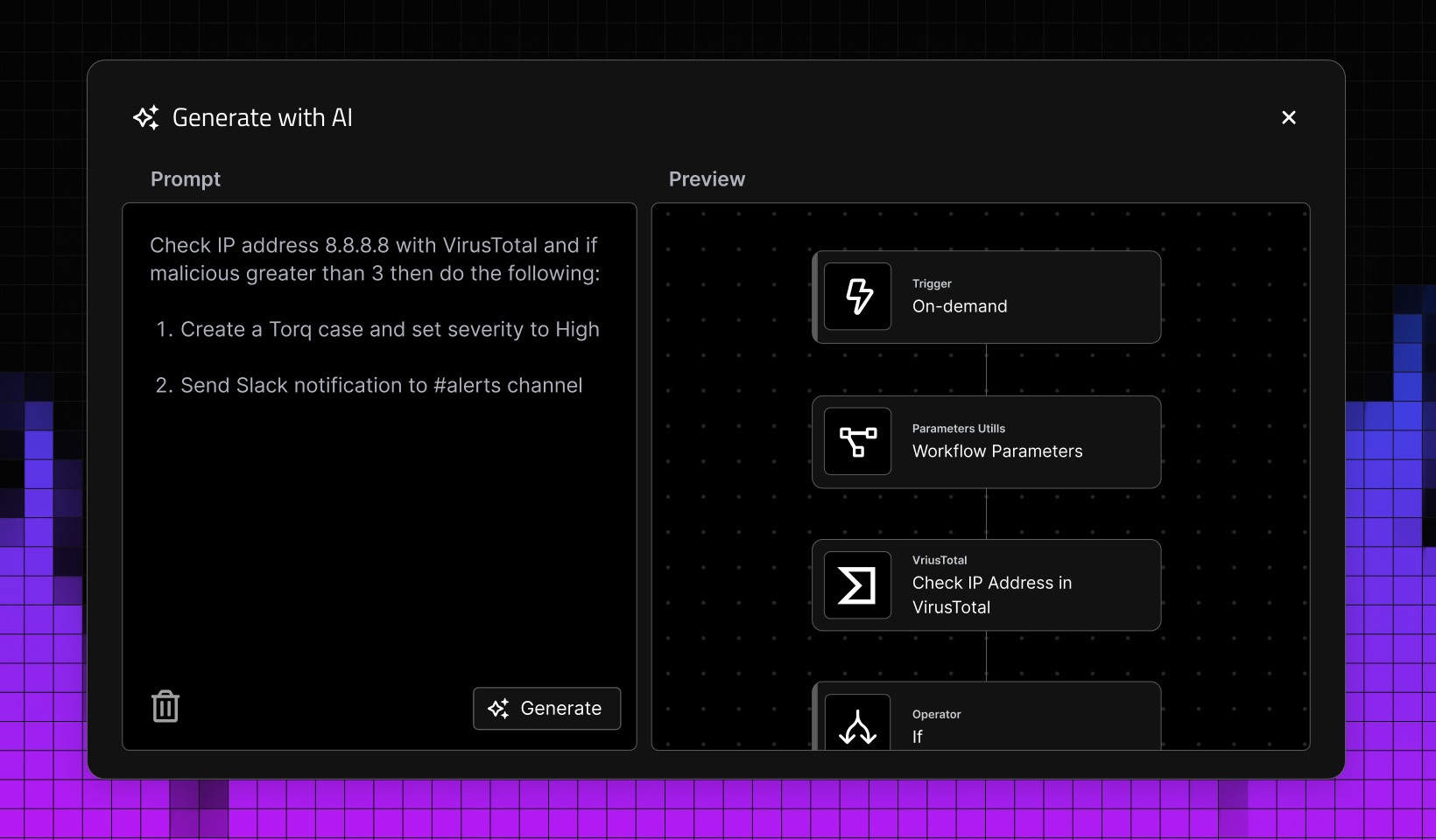 With 300 pre-built integrations and 4,000+ pre-built steps, the Torq AI SOC Platform unifies visibility and turns alerts into action across your stack. You can also use AI Agents to quickly build new integrations, workflows, and custom use cases.