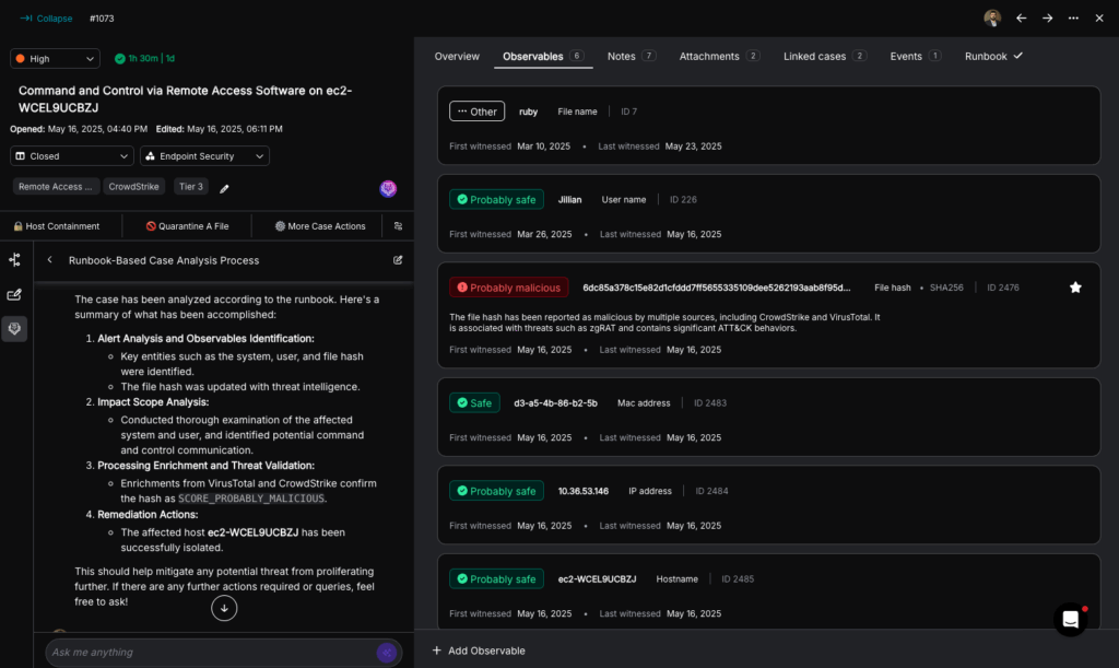 - Eliminate over 95% of Tier-1 analyst workload