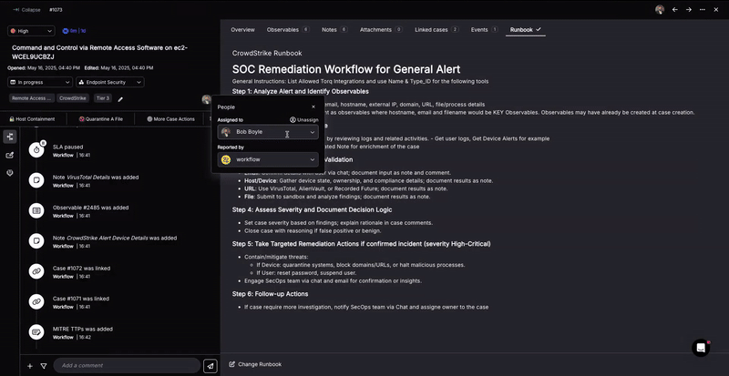 Torq Socrates looks at outcomes of historical cases and associates the appropriate runbook based on the observables of the new case. Socrates automatically analyzes runbooks written in natural language, typically containing step-by-step procedures for handling various security incidents. By analyzing the semantic meaning of the natural language instructions, the AI SOC Analyst derives action flow from the recommended response strategies for different security events.