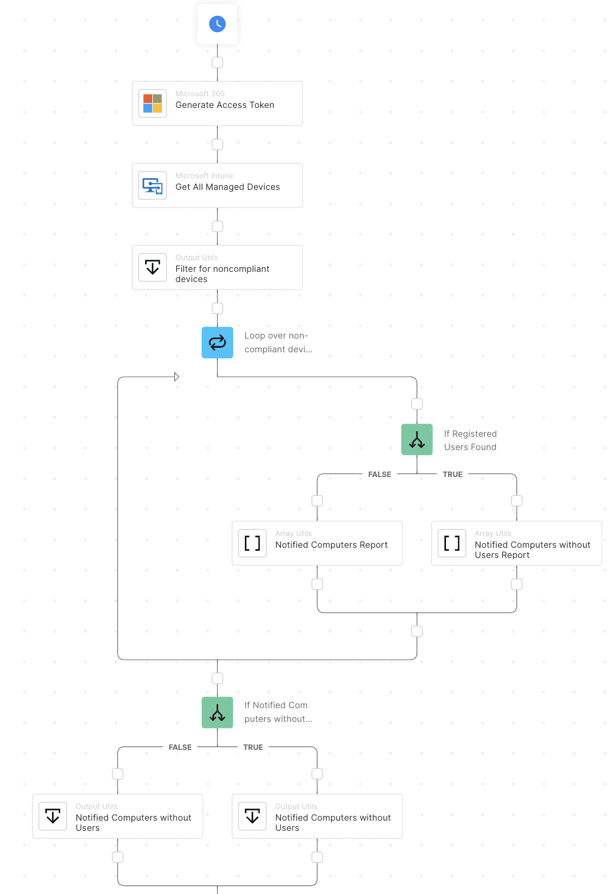 - Torq will generate an access token and pull the list of devices from Intune, then filter for the ones that are tagged as non-compliant.