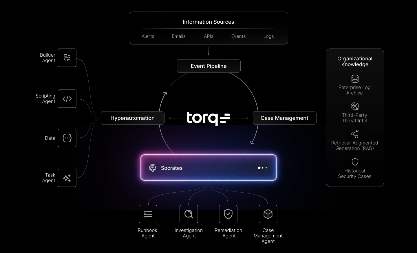 This latest version of Torq HyperSOC™ expands Torq’s Multi-Agent System (MAS) by incorporating cutting-edge Retrieval Augmented Generation (RAG) technology into existing agentic AI functionality. RAG allows Torq AI Agents to reference massive amounts of data and produce extremely specific outputs that are highly contextual, continuously improving in accuracy and enabling game-changing deep research capabilities.
