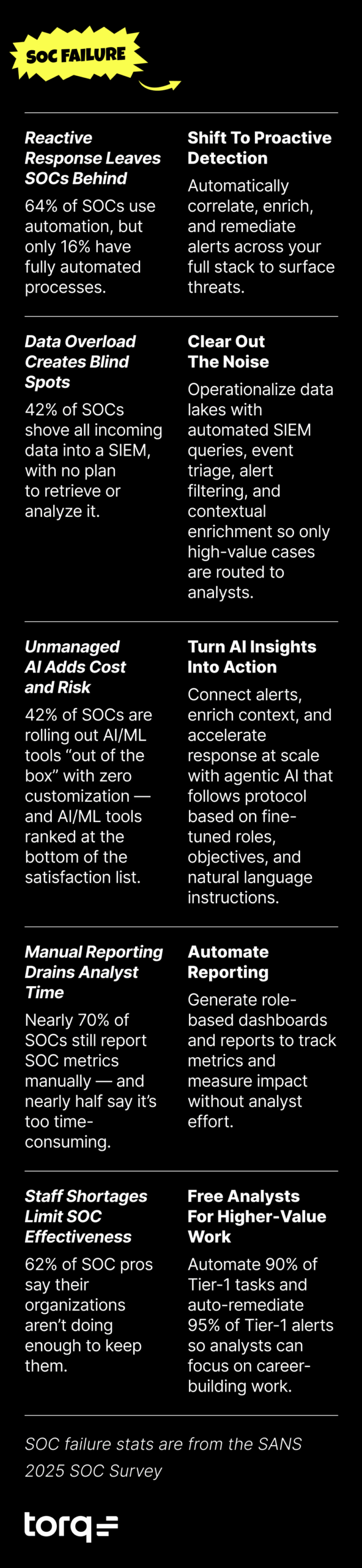 The tools may be new, but under the hood, most SOCs still struggle with the same structural issues they were five years ago: reactive workflows, manual processes, and underwhelming AI adoption. This isn’t a technology shortage — it’s an execution failure.