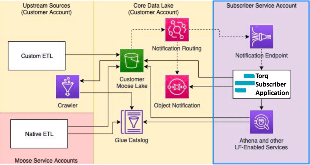 As an Amazon Security Lake subscriber, Torq consumes logs and events from Security Lake. In order to control costs and adhere to least privilege access best practices, Torq workflows can be automatically notified of new Amazon S3 objects for a source as the objects are written to the Amazon Security Lake by setting up one or more data access subscribers. Data access subscribers are notified of new Amazon S3 objects for a source as the objects are written to the Security Lake data lake.