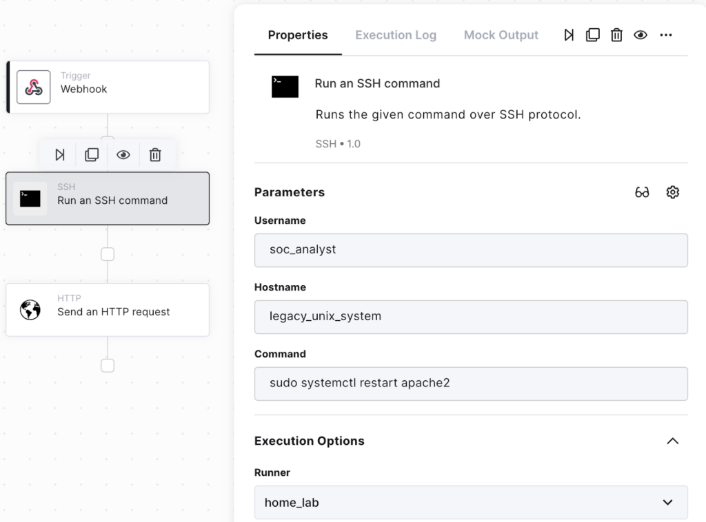 Though this approach is definitely a league more flexible than the legacy SOAR pace, at scale, it often fails. Enterprises try to integrate with systems that don’t provide any clear HTTP APIs. The ability to integrate with proprietary protocols, perform remote RPC calls, or even run a small script is often the last crucial piece in building a full enterprise-grade automation process. Plus, requiring users to build their own HTTP calls for every action on every product has become a burden on the security operations team.