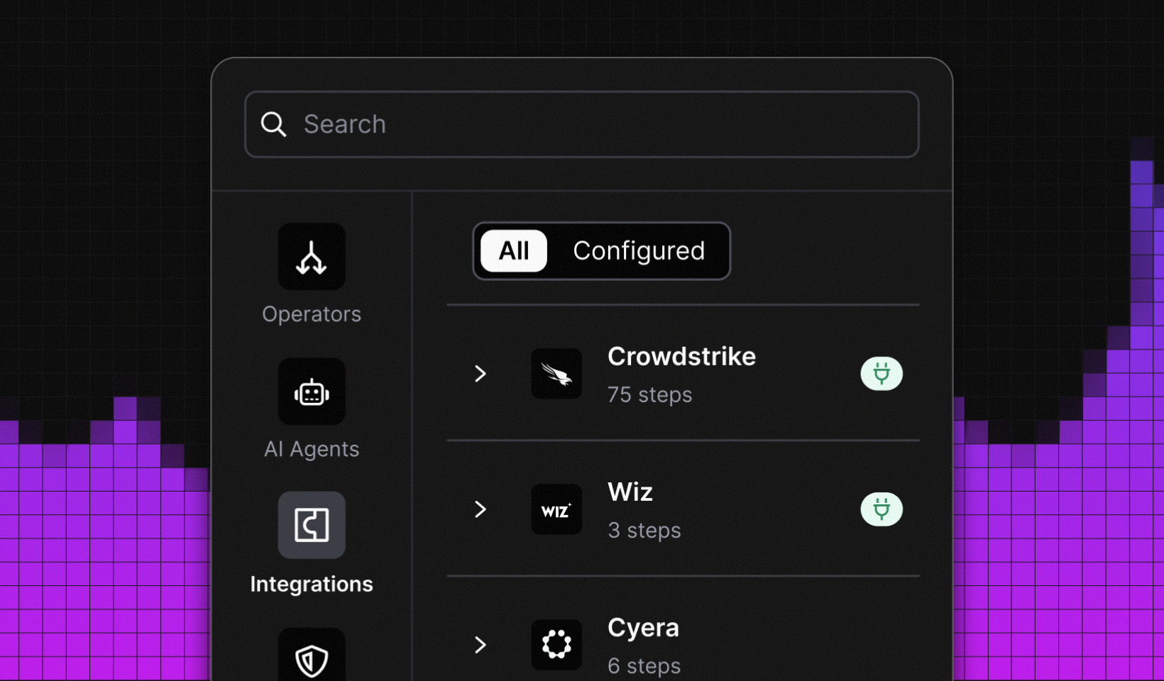Connect your entire security stack in record time using AI to generate integrations in seconds. Turn agentic insights into focused action to contain threats quickly and remediate root cause at machine speed.