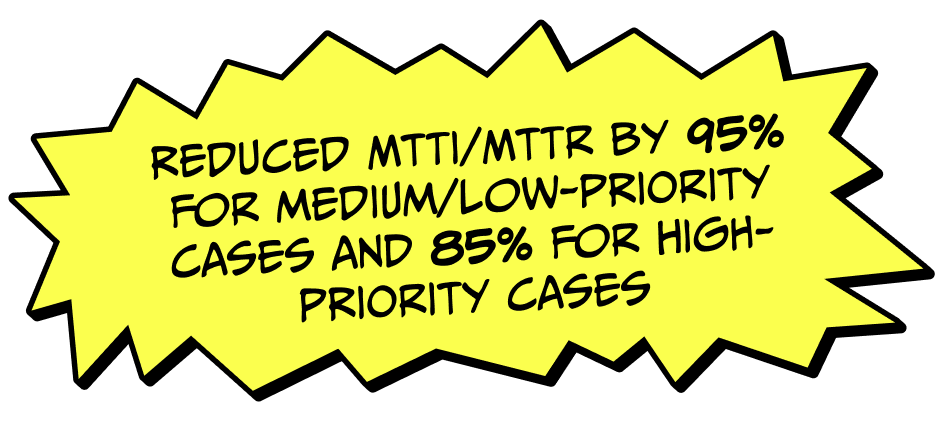 HWG Sababa’s first focus for their Torq Hyperautomation implementation was to automate the processes that heavily consumed their SOC analysts’ time, such as alert management and repetitive, manual Tier-1 tasks. This strategy sped up MTTI/MTTR by 95% for medium- and low-priority cases and 85% for high-priority cases, with investigation and response now occurring nearly simultaneously in under eight minutes.